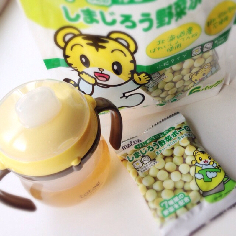 ベビちゃん、今日は野菜ボーロを初めて食べてみました(o^^o)